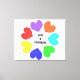 Esta impresionante huella de lienzo muestra una imagen creada digitalmente de un círculo de corazones de amor. Cada corazón es un color diferente del arcoiris. Los corazones rojo, naranja, amarillo, verde, azul, índigo y violeta son una forma alegre de expresar tu amor por un novio, novia, marido o mujer. El texto negro en el centro del círculo de corazones dice: "El amor es ciego a los colores" y celebra el amor entre personas de diferentes razas.