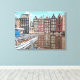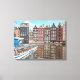 An illustration from a photograph of Amsterdam canal side houses printed on a canvas.