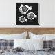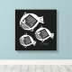 Dibujo de tinta de tres peces estilizados. TINTA BLANCA EN CANVAS NEGRAS O DE COLOR OSCURO. Inspirado por el diseño de la antigua cerámica y el arte del rock, dibujé estos peces no de manera realista, sino interpretativa. Por TRFORSMAN.