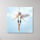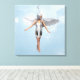 Representación digital 3D de un ángel blanco lindo sobre fondo azul del cielo