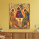 Angels de Trinidad En Mamre bello cuadro cristiano medieval de andre rublev de su interpretación de la trinidad con tres ángeles con alas doradas, halo, verde, azul y dorado, sentados juntos alrededor de una mesa con un tazón dorado. tiempos medievales ilustrativos de arte fino en tonos azules, dorados y verdes, en un delicado y refinado cuadro religioso con hermosos colores dorados de diseño elegante y estilizado. colores con líneas elegantes y colores dorados y crujientes con un efecto sobrio pero colorido y radiante.