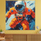 Este vibrante arte digital presenta a un astronauta contemplando el espacio.