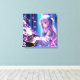 chica de anime bonito tocando el piano rodeado de estrellas y flores de color morado, azul y rosa.