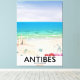 Antibes, un castillo de arena personalizado francés en un poster de vacaciones en la playa.
