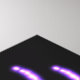 Una imagen fractal púrpura, azul y neón que se parece a la cabeza de un animal enarenado sobre un fondo oscuro.