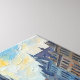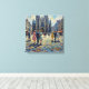 Experience Antwerp's Gothic splendor in this vibrant impressionist celebration. The magnificent Cathedral of Our Lady dominates with soaring twin spires and intricate Gothic arches rendered in deep blues and cream against swirling skies of soft gold and pale blue. Elegant figures in vintage 1950s attire—crimson, turquoise, golden yellow, sapphire dresses and tailored suits—stroll a sun-warmed medieval plaza. Historic buildings in warm ochre and terracotta frame the composition while red market awnings add nostalgic charm. Bold, expressive brushstrokes infuse this Flemish treasure with infectious energy celebrating Belgian heritage where Gothic grandeur meets urban vitality.