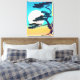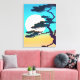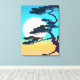 Lienzo en una silueta de un ciprés inspirada en Japón, enmarcado en una luna llena, contra un cielo de naranja de coral y agua
