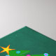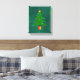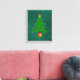 8x10. Ilustracion de un verde y brillante árbol de Navidad. Una estrella dorada se sienta en la parte superior y el árbol está decorado con motivos rosas, azules y naranjas.