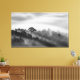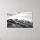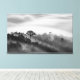Esta foto en blanco y negro muestra un árbol sobre el resto en un bosque con niebla.