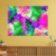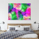 Los vibrantes movimientos de color se mezclan, creando un patrón abstracto dinámico e intrincado. Los verdes, púrpura y rosa brillantes dominan la composición, lo que evoca una sensación de movimiento y energía.