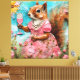 Una ardilla divertida con un vestido rosa y perlas sosteniendo una bebida de arte generado por IA