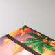 Muros de tela que representan un paisaje de playa tropical con olas onduladas, cocoteros y el sol. Se puede usar en una oficina, hotel, espacio público o hogar.