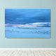 Un gran angular capta el paisaje sereno del Parque Nacional de las Arenas Blancas bajo un cielo dramático. En primer plano se encuentran las dunas de arena blanca de yeso del parque, esparcidas por pequeños trozos de vegetación. Encima, un cielo lleno de nubes de tormenta de color azul oscuro y gris domina la escena, con un resbalón de luz que asoma cerca del horizonte y que arroja un suave resplandor.