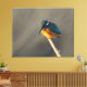 Un pescador gigante estaba sentado en la mesa de un estanque, expuesto con gusto en un lienzo estirado.