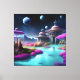 Si te gusta una escena cósmica luminiscente con un diseño arquitectónico cósmico rodeado por un hermoso agua, jardín y un cielo lleno de planetas. Esta es la escapada espacial que estás buscando.