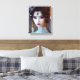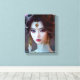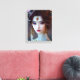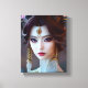 Portrait d'une belle déesse asiatique, sa chevelure brune est ramassée en un chignon travaillé avec des plumes, son visage est délicat et fin, ses yeux bleus, légèrement bridés, sa bouche rosée, ses boucles d'oreilles et son diadème or, subliment sa beauté. Vistez ma boutique ZAZZLE! menycrea_zazzle.fr