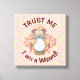 Viejo mago con capa rosa mirando la bola mágica de cristal.