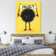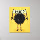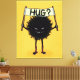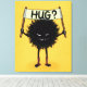 El arte del lienzo abrazado con un monstruo malvado lindo - un personaje peludo sonriente de la familia del Mal Flor. Lleva un cartel con el mundo escrito a mano "¿Abrazo?". Esta criatura rara amigable tiene calcetines lindos y sin mangas solamente para mantener sus pies calientes en este mundo poco amigable.