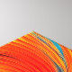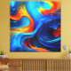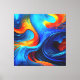 Observen la fascinante fusión de lava feroz y mar fresco en vivos tonos azules, naranjas y rojos. Añade un toque de drama a tu espacio con esta exclusiva obra de arte marina abstracta.