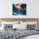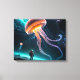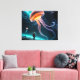 A lone astronaut stands on an alien planet, gazing up at a colossal, bioluminescent jellyfish floating in space. Smaller jellyfish are visible in the distance.