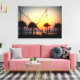 Lienzo Atardecer con palmeras y trampolín