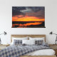 Hermosa puesta de sol con reflexiones sobre un lago utilizado para el placer y la industria