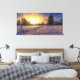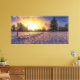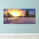 Vista panorámica de la puesta de sol sobre cubierta de parque de nieve con gran árbol de abetos en invierno