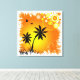 Ilustracion de atardecer tropical con decoración de palmera en marco de grano blanco