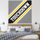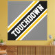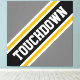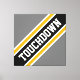 Este diseño deportivo presenta texto de fútbol atlético TOUCHDOWN dentro de una diagonal ancha realzada de rayas de carreras negras, blancas y amarillas doradas contra amplias rayas externas grises. El texto de este diseño se puede personalizar.
