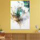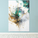 Esta obra abstracta combina pinceladas fluidas de pintura en tonos de verde esmeralda, blanco y gris con elegantes pinceladas metálicas doradas. La textura orgánica se entrelaza con salpicaduras de oro y formas etéreas, creando un contraste entre ligereza e intensidad. La composición evoca elementos naturales como el mármol, las nubes o las nebulosas cósmicas, manteniendo un ambiente sofisticado y contemporáneo. La aplicación de dorado añade un toque de lujo sutil, lo que la hace ideal para entornos modernos y elegantes.