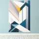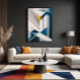 Una arquitectura abstracta se eleva en líneas geométricas que se cruzan como rascacielos de luz. El tono dorado irrumpe en azul y gris, revelando una salida del sol simbólica que une fuerza y delicadeza. La obra transmite modernidad, esperanza y dinamismo de las ciudades en crecimiento.