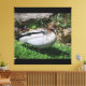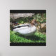 A striking male Australian Wood Duck stands gracefully on a patch of grass near a rocky garden bed adorned with succulents and native plants. His rich brown head, speckled chest, and soft grey wings with black markings contrast beautifully with the earthy tones of the natural setting. This peaceful wildlife moment evokes the quiet charm of Australian gardens and the gentle presence of native birds.