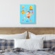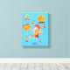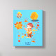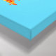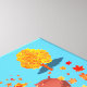 Niño de ojos grandes jugando con las hojas caídas en otoño. Fondo azul cielo. Texto para personalizar tu decoración o como regalo especial.