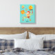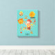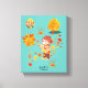 Large eyed boy playing with the falling leaves in Autumn. Sky blue background. Text for customizing your decor or as a special gift.
