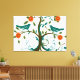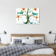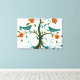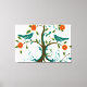 Hermoso cerezo Blossom Vintage Verde azulado y Naranja Aves con lienzo impreso