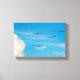 Las gaviotas están volando alto en el brillante cielo azul esperando que les arrojen comida.