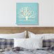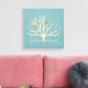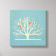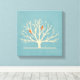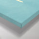 La huella de lienzo con fondo verde y mudo en la parte superior es un árbol amarillo claro con dos siluetas de pájaro naranja sentadas en las ramas.