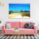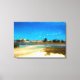 El cielo azul profundo está lleno de pájaros blancos, pájaros marinos aterrizando y despegando de un pequeño bar de arena en la playa de Siesta Key. Esta fotografía original de ZoeSPEAK, de una hermosa escena de Florida en esta imagen de tela estirada, iluminará cualquier espacio con sus colores alegres.