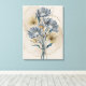 Esta impresionante obra de arte cuenta con un ramo de flores azules vibrantes con hojas de oro brillantes, colocadas sobre un fondo blanco y fresco. Un toque de lujo y sofisticación para cualquier casa.