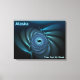 Una imagen fractal de tono azul que se asemeja a un grupo de ballenas en espiral bajo el hielo polar; tal vez ballenas beluga o minke que frecuentan los polos. El texto que dice "Alaska" también aparece en azul brillante y blanco. Personalizar agregando su propio texto adicional.