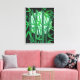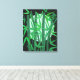 Diseño minimalista de tallos de bambú y hojas con luna llena sobre fondo negro.