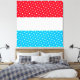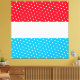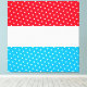Este audaz y divertido diseño deportivo presenta un centro blanco amplio y rayas de fondo azul cielo y rojo brillante. Los festivos puntos de polka blanca con baldosas recorren las franjas superior e inferior.