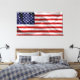 La imagen de la Bandera Americana horizontalmente orientada de dimensiones estándar ondeando en el viento. Pintura digital estilizada extragrande de una fotografía. Arte de tela envuelto para decorar tu lugar. Impresiones patrióticas y regalos para cualquiera. Usted puede transferir este diseño a una variedad de otros productos de su elección, grandes o pequeños, incluyendo copias y regalos a bajo precio. Por favor, utilice el botón "Editar diseño" para ajustar la imagen a la forma del producto en particular. Le transferirá a la Herramienta de diseño. Utilice la opción "Ajustar/Rellenar" (menú del lado derecho de la Herramienta de diseño). Puede escalar, girar, voltear la imagen en la plantilla de producto e incluso agregarle algo de texto. Solo sé creativo, diviértete, cómprate uno y sé feliz!