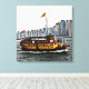 Este colorido lienzo envuelto presenta mi colorida Fotografía de un colorido barco turístico chino fotografiado desde el puerto Victoria Hong Kong. Las sencillas líneas tradicionales del barco contrastaban con los rascacielos del otro lado del agua.