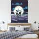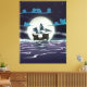 Viaje en barco con velero de madera a la luz de la luna - Pequeño barco de madera lindo navegando bajo la luna por la noche, barco personalizado por la noche.