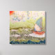 Un magnífico velero es este diseño "art deco", creado en medios mixtos con partes como resultado de un tirón de Gelli Plate, y pintado a mano mostrando aguas turbulentas del océano en varios colores, junto con el cielo de fondo adornado con colores análogos que hacen de esta obra de arte una bonita pieza de conversación para cualquier habitación de tu casa.