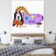 Lienzo Basset Hound con pijama y oso de peluche