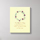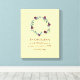 Cute personalizado BABY KEEPSAKE Canvas Imprimir mostrando una corona floral verde azulada y borgoña contra un fondo amarillo pálido. La cita inspiradora dice (Bebé) ES UNA BENDICIÓN DE UN DIOS QUE RESPONDE ORADOR, que se basa vagamente en la historia de la madre de Samuel, Hannah en 1 de Samuel 1:27-28 - "Por este niño que he rezado; y el SEÑOR me ha dado mi petición". Personalice agregando el nombre, editando el mensaje y añadiendo la fecha de nacimiento y/o peso. El texto está en burdeos. Elementos coincidentes disponibles.