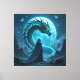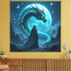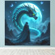 Ein riesiger, leuchtender Drache mit mystischen Runen auf seinen Schuppen erhebt sich vor dem Vollmond. In einer surrealen, außerweltlichen Landschaft steht ein einzelner Wanderer dem uralten Wesen gegenüber. Eine Szene zwischen Ehrfurcht, Magie und kosmischem Geheimnis.
