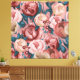 Imprimir lienzo con pintura de aceite abstracto pintando flores beige marrón con fondo floral de hojas azules. Cuadros de decoración de arte mural impresos.